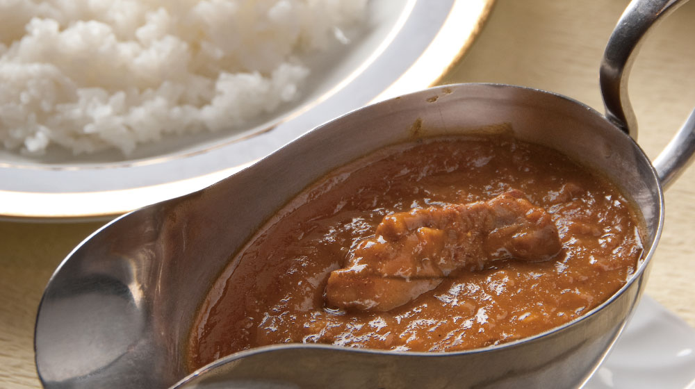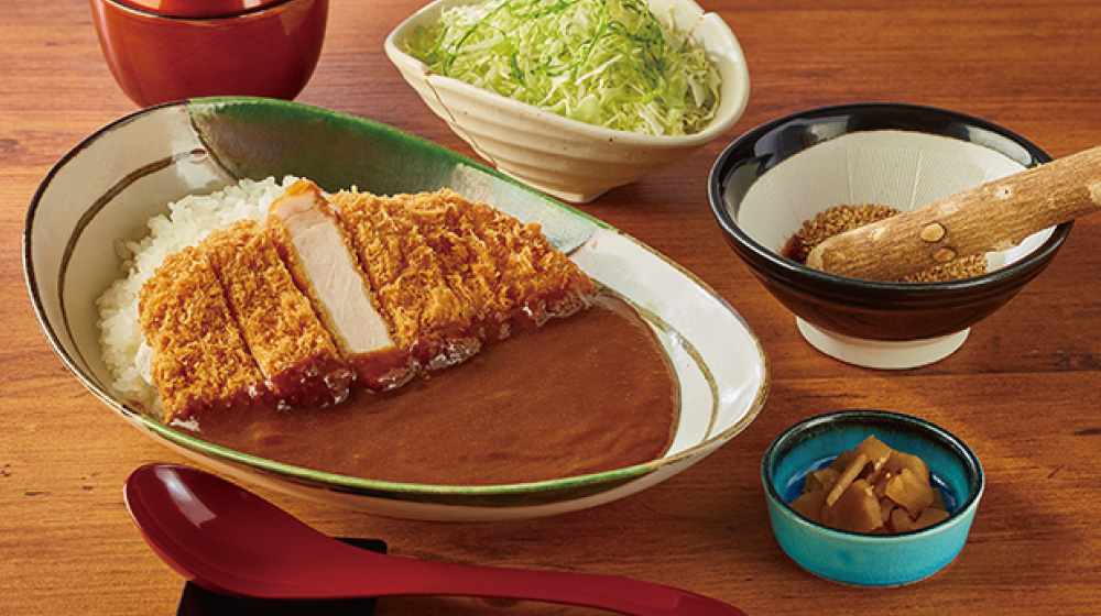 野菜・果物をじっくり煮込んだ甘味のあるカレーソースが、熟成されたロースかつの旨みを引き立てます。