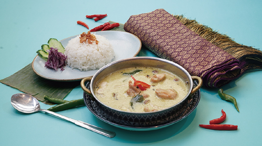 ココナッツミルクの濃厚さとタイ料理らしい辛口の味付けが病みつきになる逸品です。